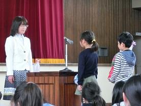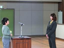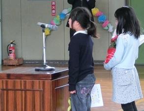 礼をしました。次はH先生へ3年生が作文を朗読しています。