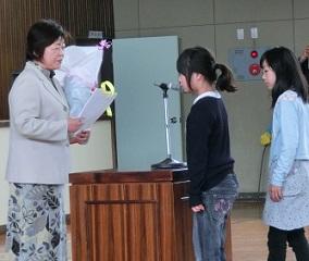 その後子供たちからお別れの手紙の朗読、花束贈呈をしました。