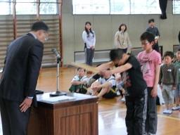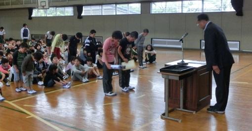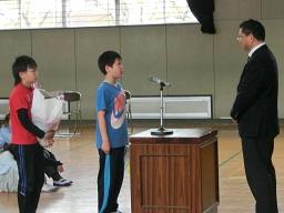 その後は、野球部の表彰です。矢板市の春季学童軟式野球大会で準優勝に輝きました。