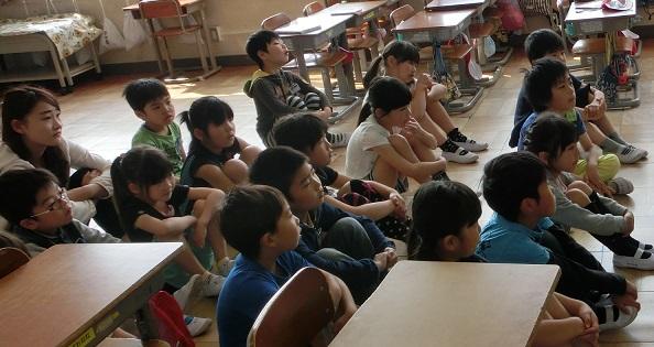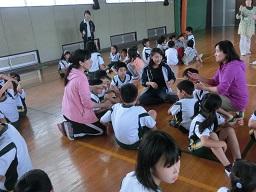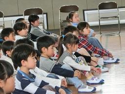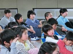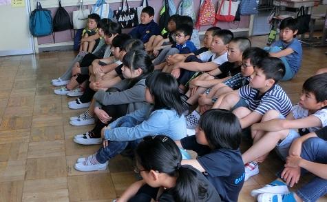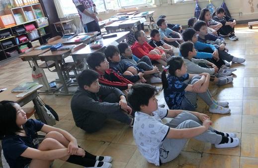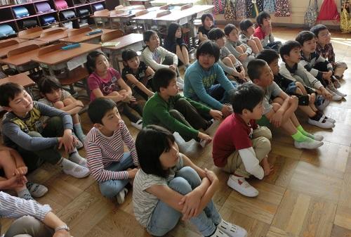 フロアーで話を聞く子供たちです。