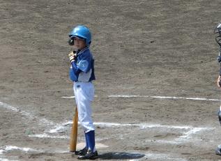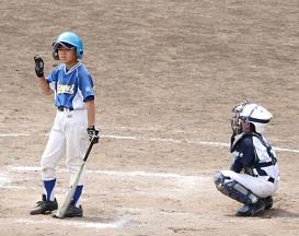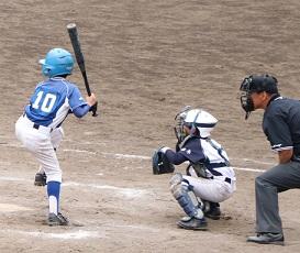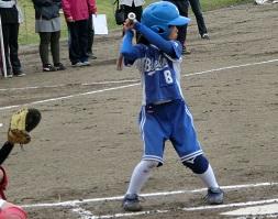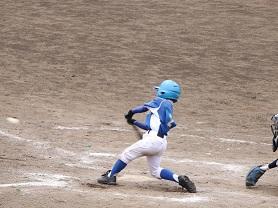 6年生TMさんがバッターです。これも良い当たりです。打球はセンター前に転がりました。