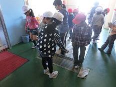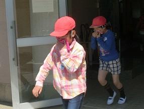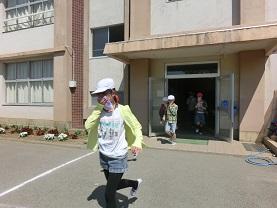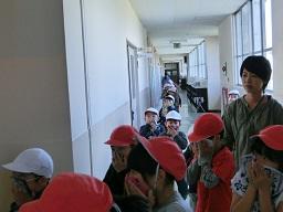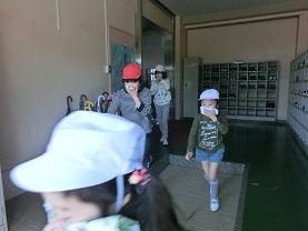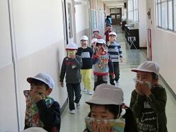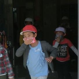 1年生も慌てないできちんと口を押さえて避難しているのが分かります。