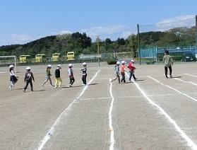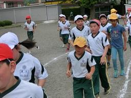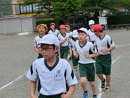 4年生になると校庭の外周を走ります。