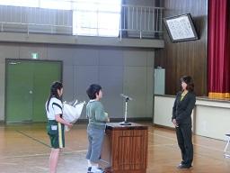 今度はT先生へ6年生代表は作文発表をしています。