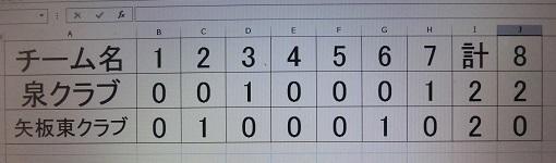 今日の午前10時40分から矢板市野球場の本球場で大会がありました。泉クラブはスコア表のように7回まで2対2、そして特別ルールで2対0で矢板東クラブに勝利しました。