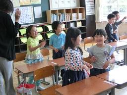 この日は「英語であいさつ」の勉強でした。