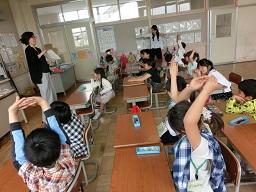 「How meny~」とALTの先生が聞きます。中学校の英語の先生も英語でどんどん聞いてきます。数を数えたらそれを英語で言う練習をしていました。