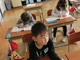 3年生の作文がありますからそれを紹介します。「今日ひなんくんれんをしました。はじめに大きなじしんがおきて、つくえの下にもぐりました。」