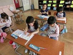 「ちょうりしつは西なので、西かいだんから下りちゃうとあぶないので、東かいだんから下りました。みんな無言しゅうごうできました。1年生は初めてなのに無言ですごいなと思いました。これからも無言でしたいです。」