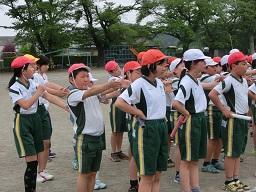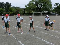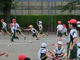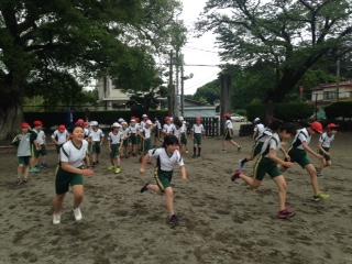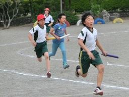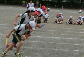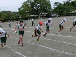 学年別に練習していました。上の写真は5年生の練習風景です。後ろを見ないでバトンを渡すことができたグループです。
