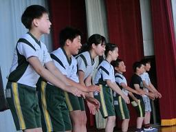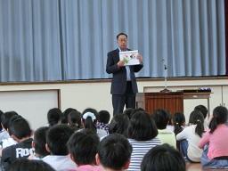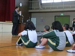 月曜日の昼休みの後に、集会を行いました。最初は学校長の話です。
