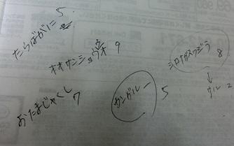 どんな問題なのか、出題者のノートを見せてもらいました。ノートには、サル、カンガルー、たらばがに、おたまじゃくし、シロナガスクジラと動物の名前が書いてありました。