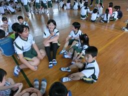 続いてT先生のお話です。T先生は「今異動した学校で体育の先生をやっているので、市の陸上大会でみんなに会えることを楽しみにしています。」と話されました。