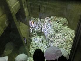 説明が終わってからビデオを見せてもらいました。そして実際に見学に行きました、ここは最初にゴミが運び混まれる場所です。ガラス越しに見ています。