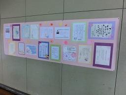 黒板には自分達の発表原稿には赤い付箋を、友だちの発表原稿には青い付箋を貼るように書いてありました。