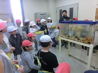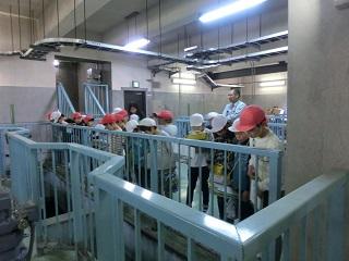 次は、移動して「寺山浄水場」で、安全で大量の水をつくる浄水場の働きについて学習しました。施設を見学し、職員の方からの説明を聞きました。