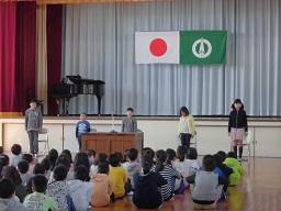 2~6年生各学年代表児童が、新学年に向けての作文を発表しました。