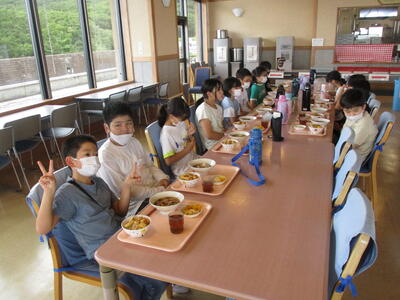 昼食は、カレーでした。海の見える食堂で、おいしくいただきました。みんな元気に活動しています。
