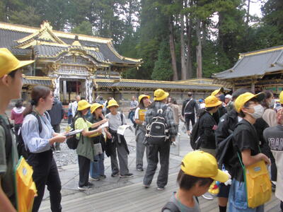 6年生が、総合的な学習と社会科の学習で、日光に出かけました。日光では、東照宮の見学と市街地の見学をしました。徳川の時代について学習したり、観光地の街づくりについて調べたりしました。