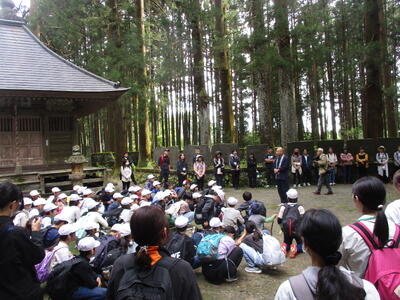 泉小の伝統行事「寺山遠足」を実施しました。これは、日本初の修学旅行実施校であることを記念した行事で、全校生が、学校から寺山観音寺への行き帰り約11㎞の行程を歩きます。天気にも恵まれ、また、保護者やコミュニティ・スクールの方々のサポートを受けて参加者全員が完歩することができました。縦割り班をリードする6年生の力も大きいものがありました。この行事が、学校への誇りと、故郷を愛する心を育てることにつながることでしょう。