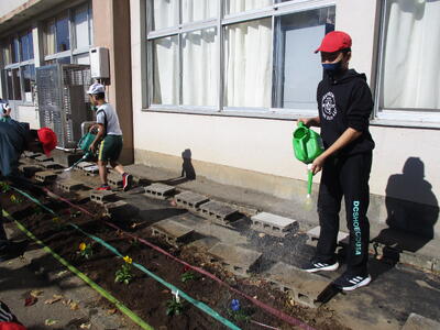今日は、ふれあいタイムに、花壇の花植えを行いました。