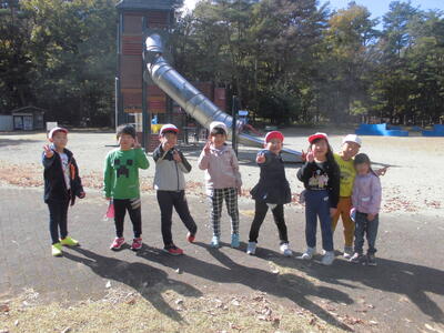 1年生が、生活科の学習で、那須野が原公園へ出かけました。落ち葉や木の実を集めたり、遊具で遊んだりしました。秋の公園を満喫しました。