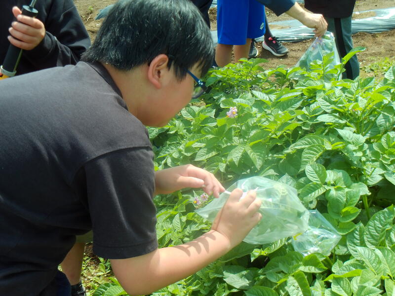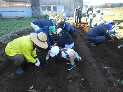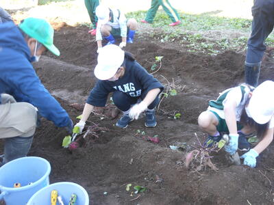 1・2年生は、コミスクの皆さんのご協力をいただき、サツマイモの苗を植えました。