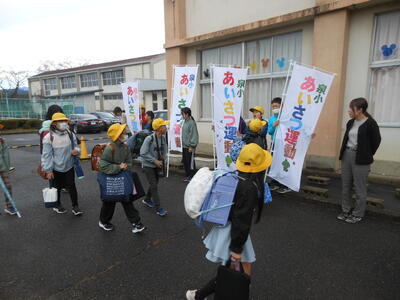 あいさつは人と人との大切なコミュニケーションです。ご家庭でも、「おはよう」「ありがとう」など家族内でもあいさつの輪を広げてください。あいさつは「いつでも、どこでも、だれにでも」です。