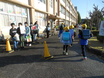 本日は、民生委員の皆様が、子供たちの安心・安全のために下校を見守ってくださいました。