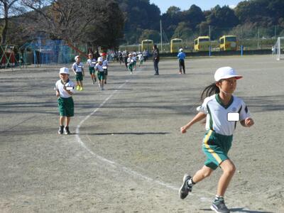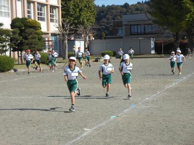 体力の向上を目指して「ランランタイム」を行っています。全校生が、学年に応じたコースで5分間走ります。12月には持久走大会を予定しています。目標をもって、体力向上に取り組んでほしいと思います。