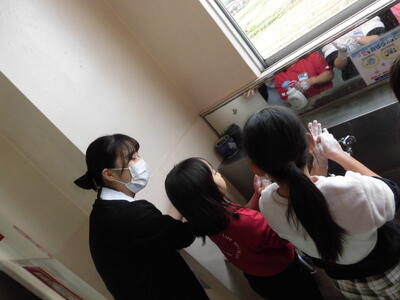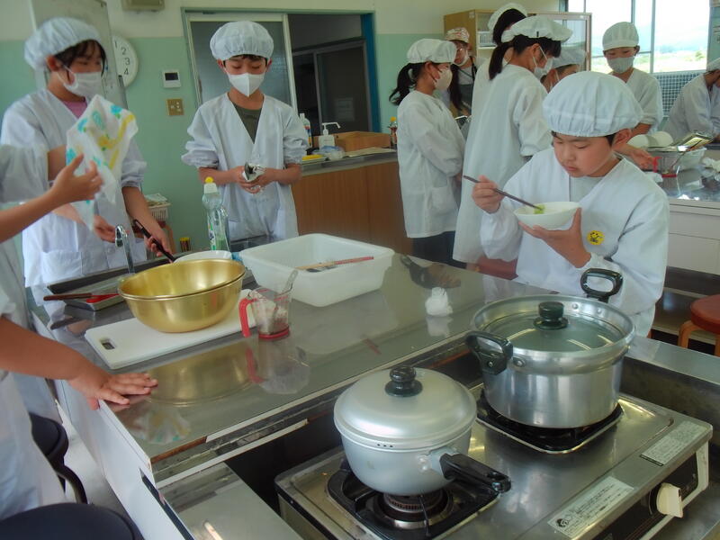 5年生は、家庭科の調理実習を行いました。みんな協力して手際よく片づけを行っています。