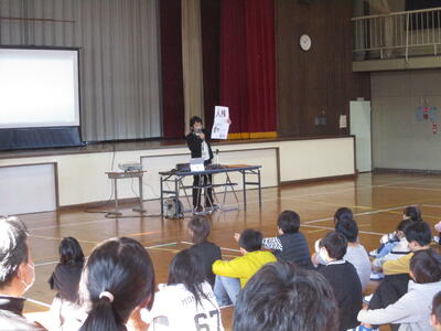 12月10日の世界人権デーに合わせて、本校では、2日(月)~6日(金)を人権週間と位置付けて、人権意識を高める活動を行っています。今日は、人権擁護委員さんによる、講話でした。テーマは「いじめ」で、いじめはいけないこと、周りの人も責任があること、気付いたら相談することなどにつてお話しいただきました。この期間には、「言葉の花束」や「読み聞かせ」なども行います。みんなが笑顔で生活できる学校であってほしいと思います。