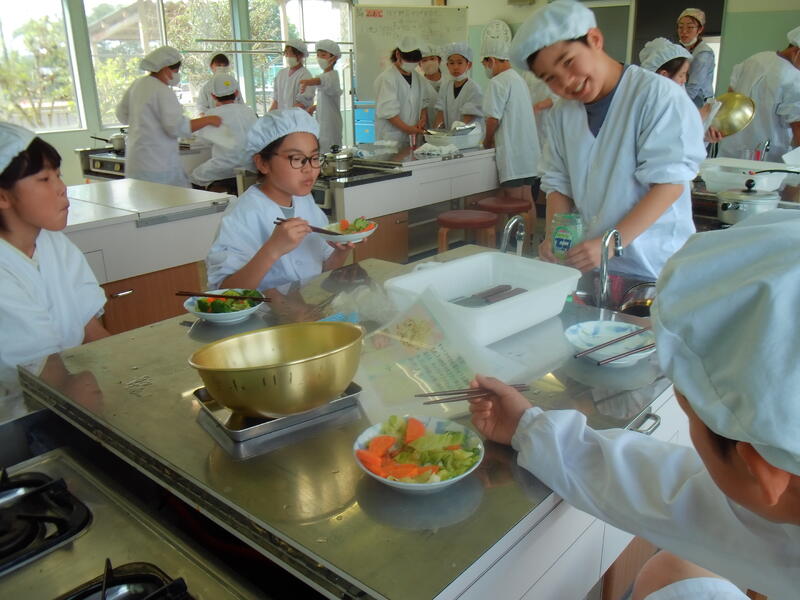6年生は、グループで協力して、野菜炒めをつくりました。とてもおいしそうでした。