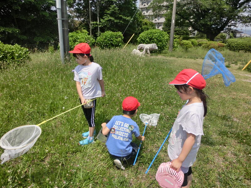 1年生は、生活科の授業で、長峰公園に行きました。虫を採ったり、遊具で遊んだりしました。