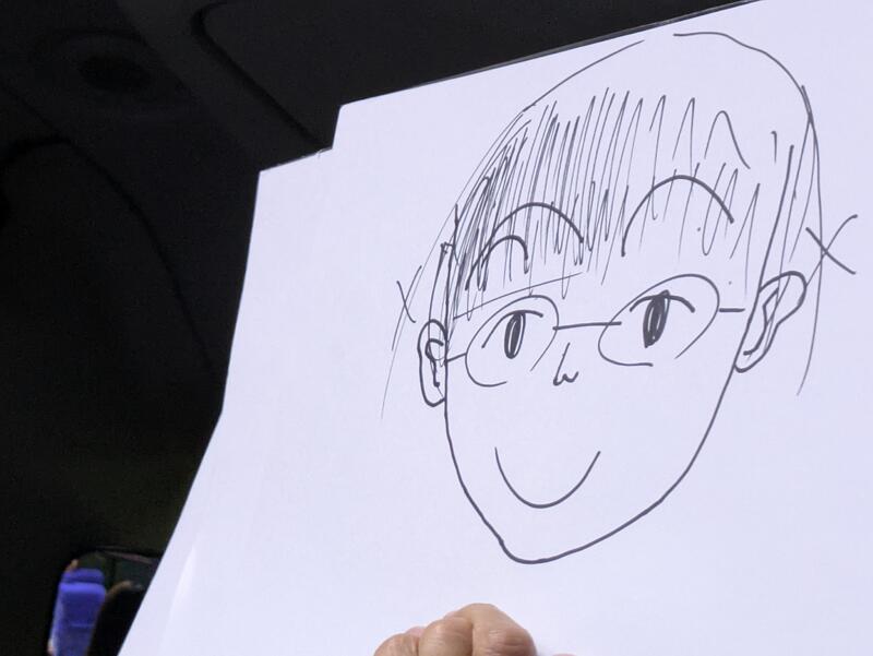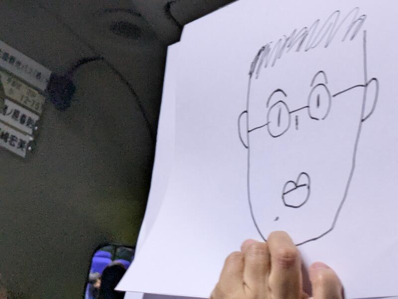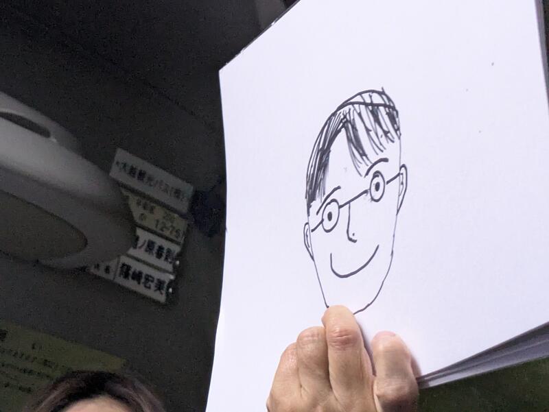 バスレクで担任の先生の似顔絵コンテスト