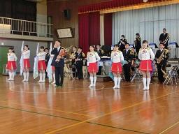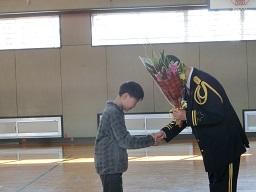 音楽隊の皆さんもよく聞いてくれています。6年生のUS君が花束を渡しました。指揮の副団長さんが受け取ってくれました。