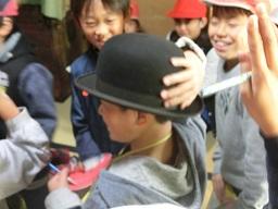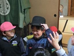 ここは主人の寝室だそうです。ここにその当時かぶっていた山高帽がありました。かぶってみると「あ、かっこいいなあ。ぼくもかぶりたい。」と周りの子供たちから声が上がりました。