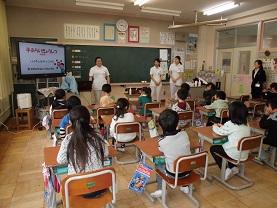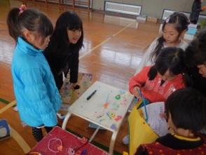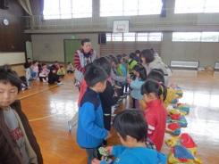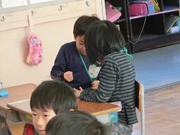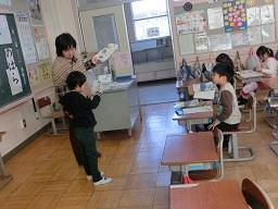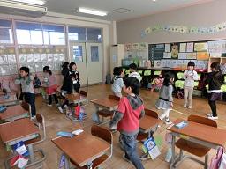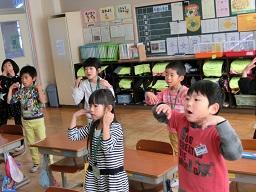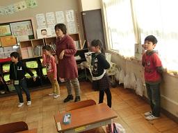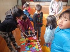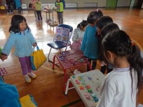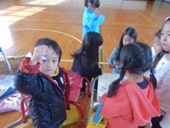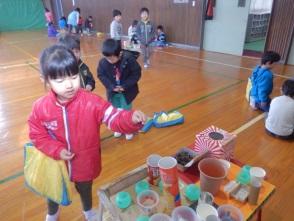 このシリーズは、1,2年生の秋祭りの様子をお伝えします。行った日は、11月10日です。泉保育園の子ども達が泉小学校に来ました。