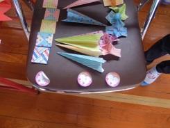 今、新青い目の人形「スージー」を贈ってくれたギューリック3世にお礼の折り紙を作っています。