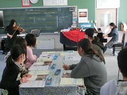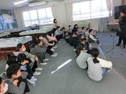 ほとんどの子ども達が感想を書き終わると、今度は先生が、子ども達をバイオリンの近くに集めました。