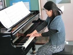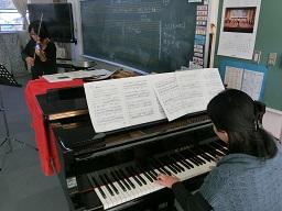 音楽室は床に段差があるので、うまく腰掛けられます。