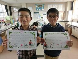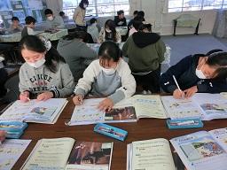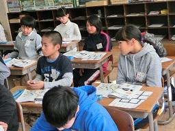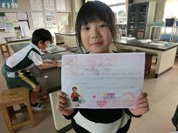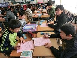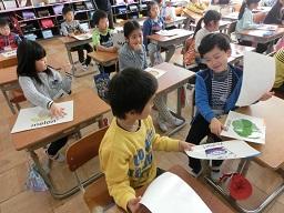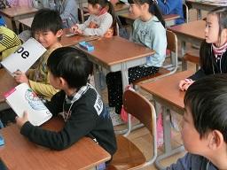 「ぼく、こんなカードだよ。「いいなあ。」発音に気を付けながら勉強していた2年生でした。