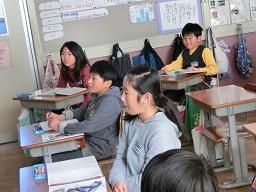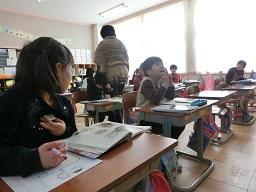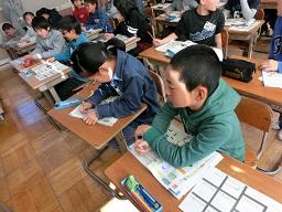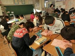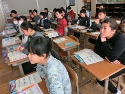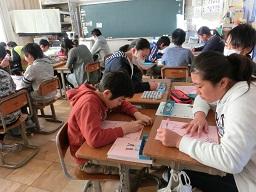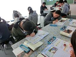 はじめに中学校の先生の話を聞いてから、中学生の勉強の様子を見ました。