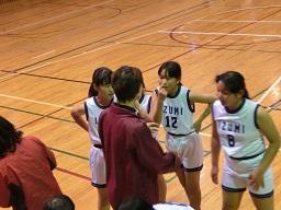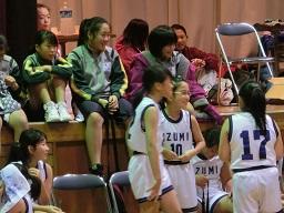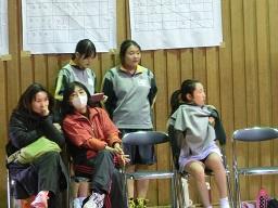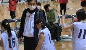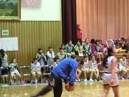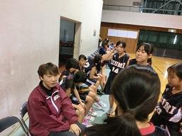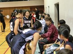 今日は試合の様子を少し詳しくお届けします。タイムアウトで戻ってきた選手達に監督が話をしています。そしてその後、メンバー交代でゲームに出る子が選手登録をします。