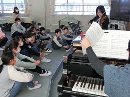 今度は合奏の練習です。2年生は鍵盤ハーモニカや打楽器を演奏します。