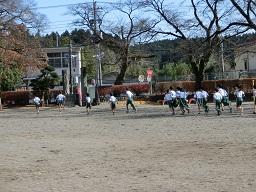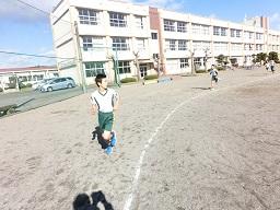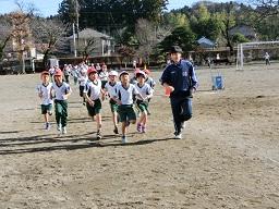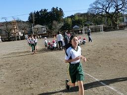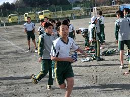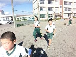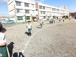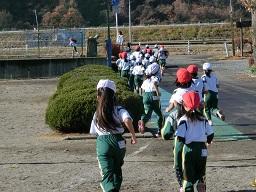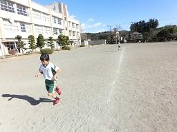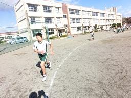 たすきを受け取るとトラックを1周してから校庭の外周を走ります。