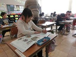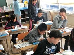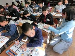 青い目の人形のことも発表の中に入りました。パンフレットを作ることも考えている6年生です。明日の発表会が楽しみですね。