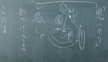 黒板に子供たちの考えがたくさん出ました。一生懸命考えた子供たち、心を耕す道徳の勉強でした。
