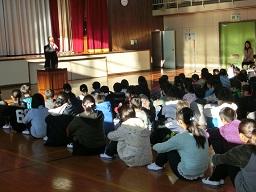 今回は5年生です。5年生が読んでもらっている本は「ありがとう 私のいのち」という本です。