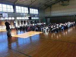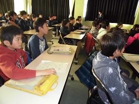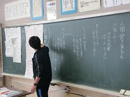 それが終わってから、中学生が中学校の様子をスライドで見せてくれました。